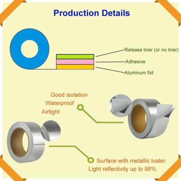 Self Adhesive Wound Aluminum Foil Tape are composed of soft high-strength pure aluminum foil/PET composite aluminum foil and coated with high-performance solvent emulsion acrylic pressure-sensitive adhesive.